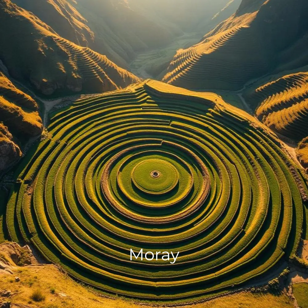 Moray concentric circles; teachings on the three cosmic forces. Maras salt terraces. Overnight Urubamba. (Breakfast included)
